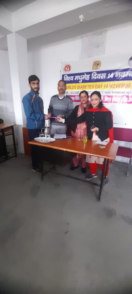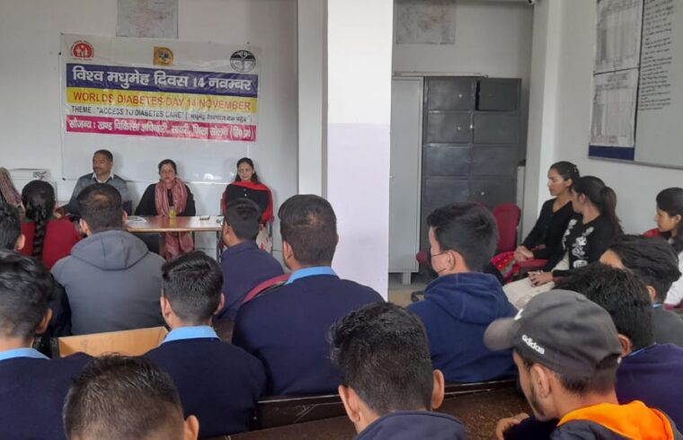 स्वास्थ्य खण्ड सायरी द्वारा विश्व मधुमेह दिवस के अवसर पर औद्योगिक प्रशिक्षण संस्थान (आई.टी.आई) सायरी में जागरूक शिविर आयोजित किया गया। जागरूकता शिविर की अध्यक्षता खण्ड चिकित्सा अधिकारी सायरी डाॅ. अल्पना कौशल ने की।