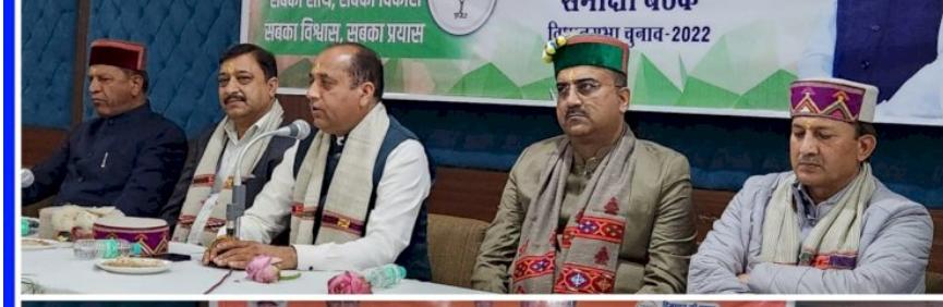 भारतीय जनता पार्टी हिमाचल प्रदेश चुनाव प्रबंधन समिति की समीक्षा बैठक आज परमाणु में आयोजित की गई। इस बैठक में मुख्यमंत्री जयराम ठाकुर, प्रदेश अध्यक्ष सुरेश कश्यप, डॉक्टर राजीव बिंदलए डॉक्टर सिकंदर कुमार , राजीव भारद्वाज , पवन राणा और भाजपा के वरिष्ठ नेता मंगल पांडे विशेष रूप में उपस्थित रहे। मुख्यमंत्री जयराम ठाकुर ने बैठक को संबोधित करते हुए कहा कि भारतीय जनता पार्टी में चुनाव प्रबंधन की दृष्टि से उत्तम कार्य किया हैए जिसकी वजह से भारतीय जनता पार्टी पूरे चुनाव में फ्रंट फुट पर रही है।