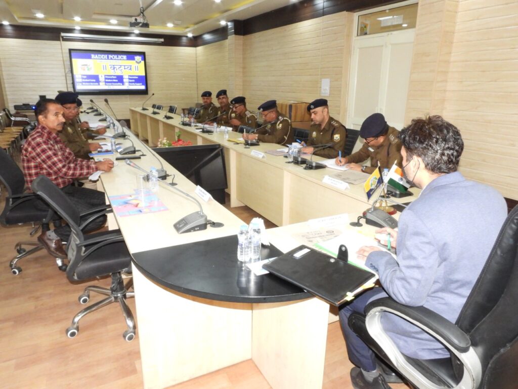 औधोगिक नगरी बीबीएन में बढ रहे अपराधो को देखते हुए एस पी बद्दी मोहित चावला ने आज सभी थाना प्रभारियो के साथ एक बैठक आयोजित की जिस में साल भर के क्राईम पर सभी से विस्तृत रिपोर्ट ली गई । पुलिस उपमण्डलाधिकारी प्रियक गुप्ता ने जानकारी देते हुए बताया कि एस पी बद्दी ने आज सभी थाना प्रभारियो से पूरे साल के क्राईम की विस्तृत रिपोट ले कर उस पर विस्तृत चर्चा की और अपराधो को क्रन्ट्रोल करने के लिए हिदायते जारी की । उन्होने बताया कि अपराधो को देखते हुए सभी थाना प्रभारियो को अपने अपने इलाके में रात्रि गस्त को बढाने के लिए कहा गया है । एस पी बद्दी मोहित चावला ने इस दौरान इलैक्शन कमीशन द्वारा स्थापित स्टा्र्रंग रूम की कडी निगरानी करने के भी निर्देश जारी किए और सभी थाना प्रभारियो को चुनाव आयोग के नियमो को सख्ती के साथ लागू करने के लिए कहा । पुलिस थाना प्रभारियो के साथ बुलाई गई इस बैठक में थाना प्रभारियो ने अपने अपने क्षेत्र के क्राईम के मोटसएपरेडिस के बारे मे जानकारी दी । इस दौरान इलाके में बढ रही चोरियो की बारदाताओ व नशेडियो के विरूघ्द भी कार्यवाही करने के लिए हिदायत दी गई है ।