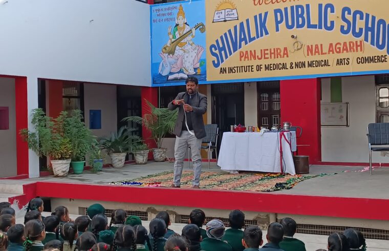 सम्राट जादूगर ने अलग.अलग मैजिक ट्रिक्स दिखाकर शिवालिक पब्लिक स्कूल पंजैहरा में बच्चों का किया भरपूर मनोरंजन
