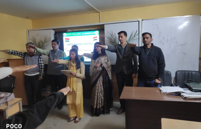 नालागढ उपमण्डल के रामशहर में राजकीय महाविद्यालय में सडक सुरक्षा क्लब के अन्तर्गत आज एक शपथ समारोह का आयोजन किया गया । मिली जानकारी के मुताबिकम प्रो सुमन ने इस समारोह के अध्यक्षता कालेज के प्राचार्य प्रो सतविन्दर सिंह द्वारा की गई । सडक स ुरक्षा क्लब के अध्यक्षा प्रो सुमन ने यह जानकारी सांझी करते हुए बताया कि इस मौके पर सभी छात्रो ने वाहन चलाते समय और सडक पर चलते समय सडक सुरक्षा नियमो का पालन करने की शपथ ग्रहण की । उन्होने बताया कि इस मौके पर छात्रो को सभी सडक सुरक्षा साइनबोर्ड छात्रो को समझााए गए। इस मौके पर कालेज के प्राचार्य प्रो सतविन्दर सिंह ने विद्यार्थियो से सभी सुरक्षा नियमो का पालन करने की अपील की । इस मौके पर प्रो दुर्गा चन्द नेगी प्रो तनु कलसी प्रो शशिकिरण पालनाटा और प्रो रितू भी उपस्थित रही ।