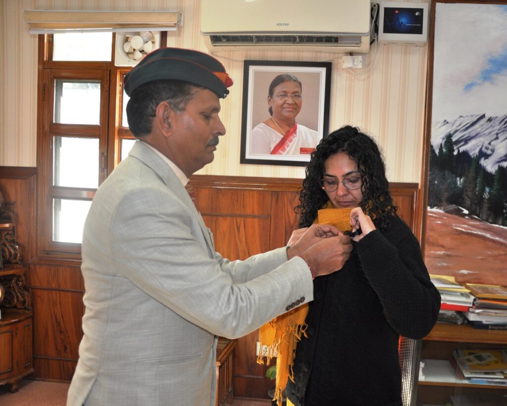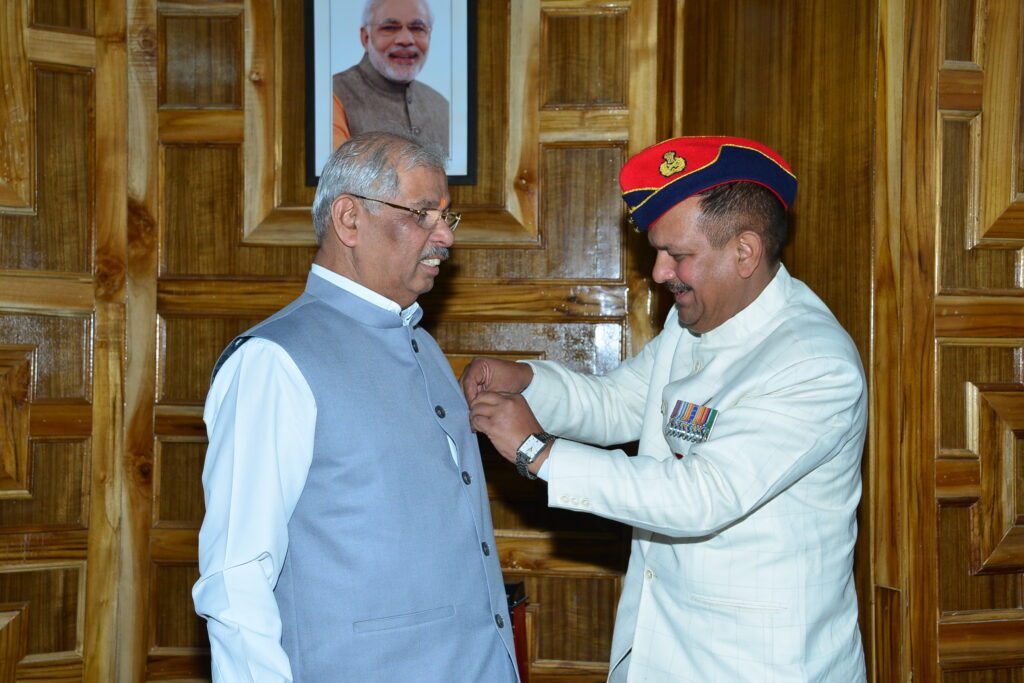 इस अवसर पर सैनिक कल्याण विभाग के निदेशकए ब्रिगेडियर मदन शील शर्मा ;सेवानिवृत्तद्ध ने राज्यपाल के कोट पर सशस्त्र सेना का झंडा लगाया।
