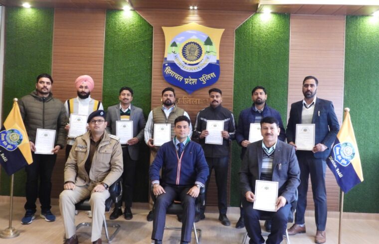 पुलिस जिला बद्दी की साईबर टीम द्वारा गत वर्ष किए गए सरहानीय कार्यों के लिए पुलिस अधीक्षक, बद्दी ने आज कार्यालय पुलिस अधीक्षक बद्दी में साईबर टीम को प्रशस्ति देकर सम्मानित किया तथा उनकी हौसला अफजाई की ।