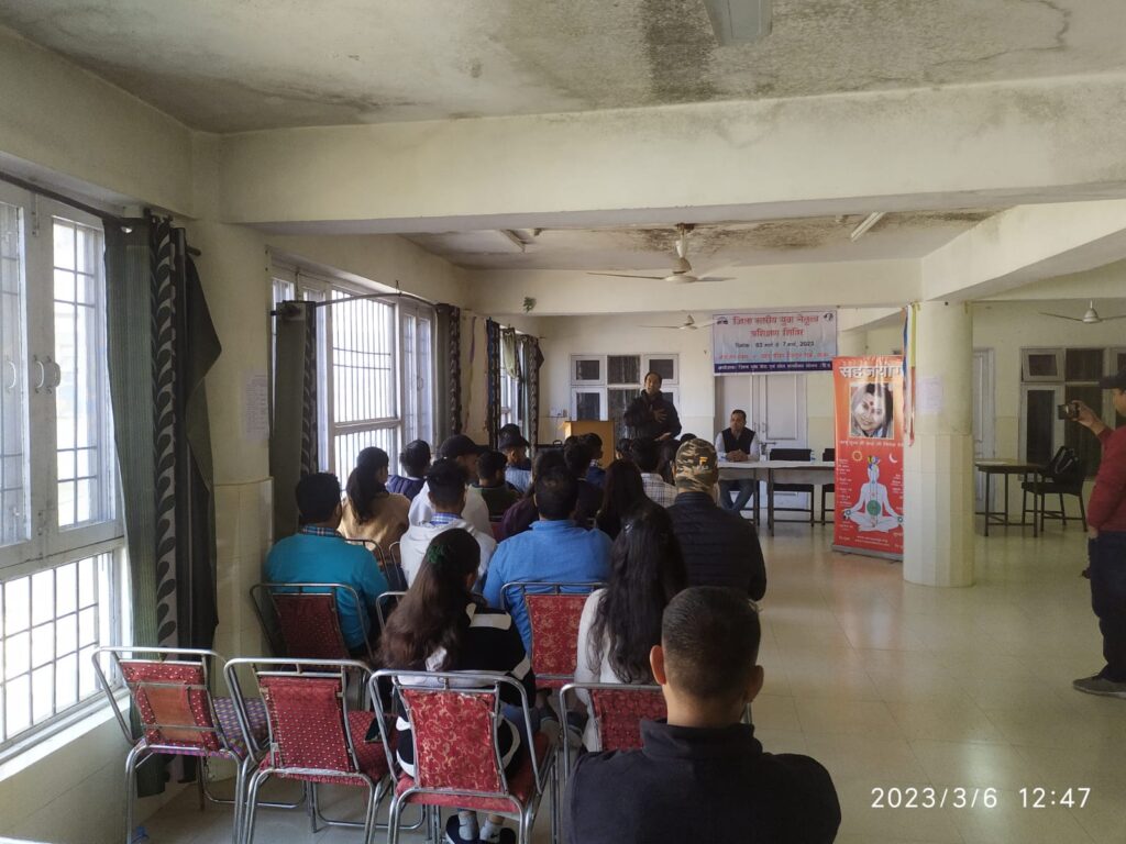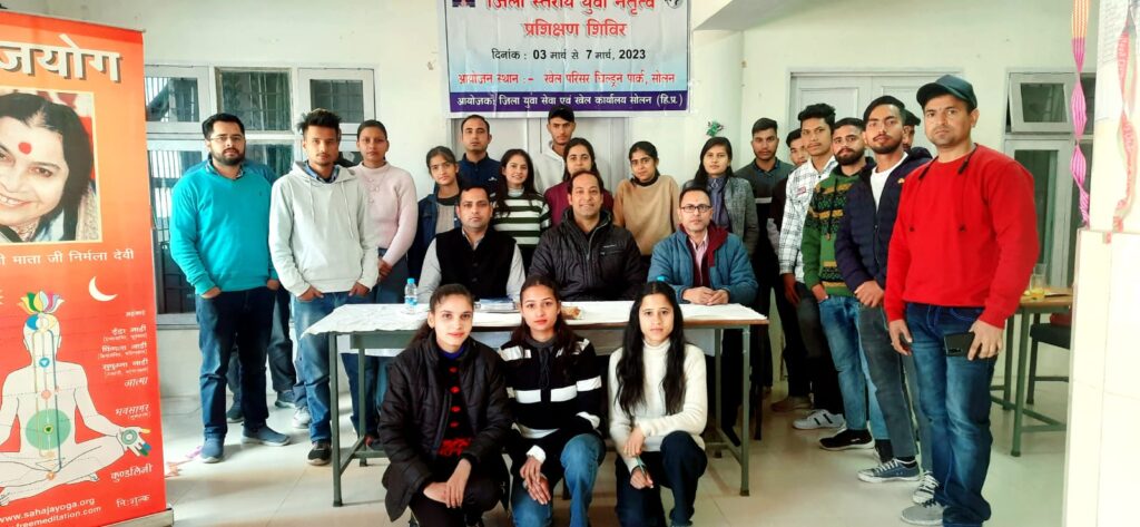 जिला युवा सेवा एवं खेल अधिकारी द्वारा 15 से 29 वर्ष की आयु वर्ग के युवाओं को भविष्य के प्रति सजग करने के उद्देश्य से जिला स्तरीय युवा नेतृत्व प्रशिक्षण शिविर का आयोजन किया किया जा रहा है इस प्रशिक्षण शिविर में सोलन जिला के सभी खंडों से लगभग 50 80 प्रतिभागी भाग ले रहे हैं इस वर्ष राशि व 3 से 7 मार्च तक चिल्ड्रन पार्क सोलन की खेल परिसर में आयोजित किया जा रहा है इस बारे में जानकारी देते हुए जिला युवा सेवा एवं खेल अधिकारी ने योग का जीवन में महत्व की जानकारी युवाओं को देने के लिए सोलन के सहयोगियों को आमंत्रित किया है