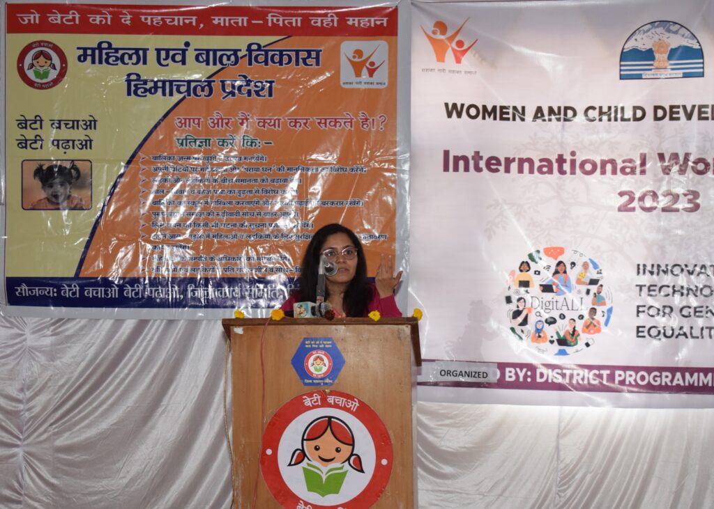 उपायुक्त सोलन कृतिका कुलहरी ने अंतरराष्ट्रीय महिला दिवस के उपलक्ष्य में बाल विकास परियोजना विभाग सोलन द्वारा कांगड़ा हमीरपुर मैत्री सभा के सभागार में आयोजित ज़िला स्तरीय महिला दिवस कार्यक्रम का शुभारम्भ दीप प्रज्जवलित कर किया।