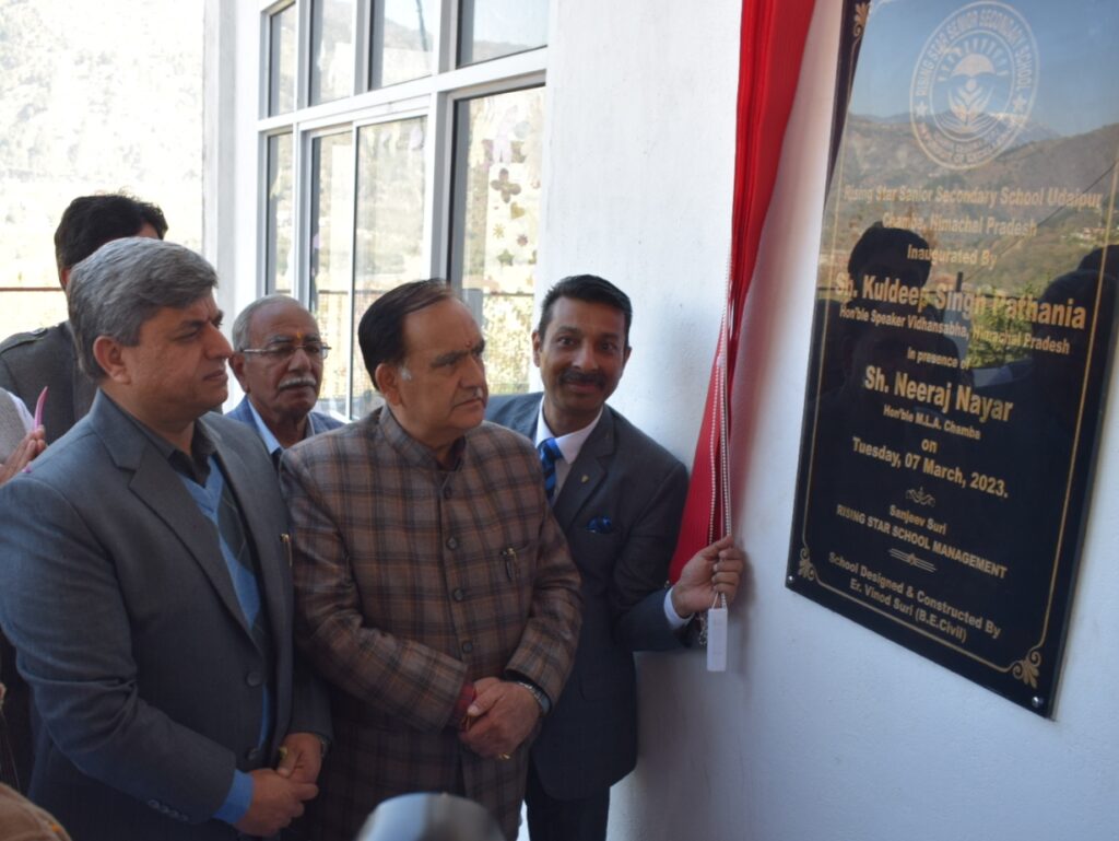 विधानसभा अध्यक्ष कुलदीप सिंह पठानिया ने विधानसभा क्षेत्र के अंतर्गत पंचायत उदयपुर में सीबीएसई से मान्यता प्राप्त राइजिंग स्टार वरिष्ठ माध्यमिक विद्यालय का आज विधिवत तौर पर शुभारंभ किया। इस अवसर पर स्थानीय विधायक नीरज नैयर विशेष रूप से उपस्थित रहे।विधानसभा अध्यक्ष ने स्कूल प्रबंधन की तारीफ करते हुए कहा कि राइजिंग स्टार स्कूल प्रबंधन द्वारा ज़िला में शिक्षा के क्षेत्र में उल्लेखनीय कार्य किया जा रहा है । उन्होंने कहा कि उदयपुर में खोला गया स्कूल विद्यार्थियों को सीबीएसई पाठ्यक्रम उपलब्ध करवाने के अतिरिक्त विभिन्न प्रतियोगी परीक्षाओं की तैयारियों में भी अपनी महत्वपूर्ण भूमिका निभाएगा।