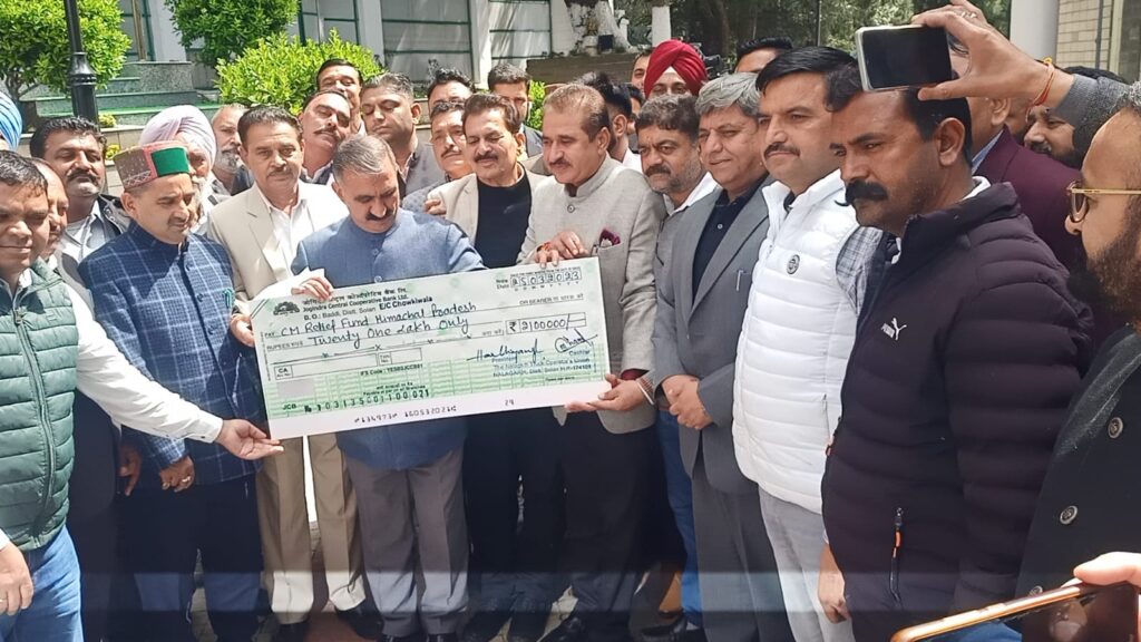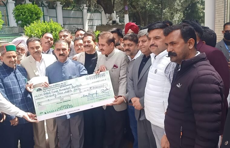 ट्रक युनियन नालागढ द्वारा मुख्य मन्त्री राहत कोष को 21 लाख का चैक भेट । मुख्य मन्त्री ने दिया आपरेटरो की समस्या के समाधान का भरोसा।