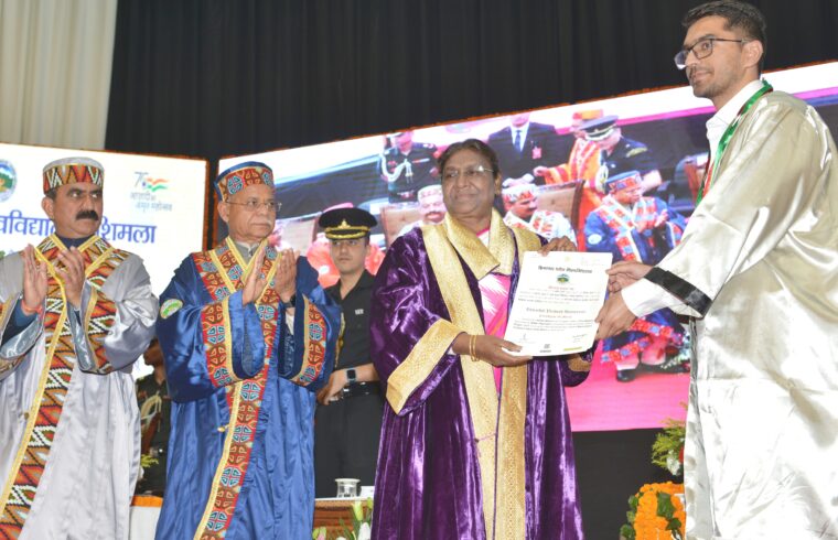 राष्ट्रपति द्वारा हिमाचल प्रदेश विश्वविद्यालय के 26वें दीक्षांत समारोह में मेधावी विद्यार्थियों को स्वर्ण पदक प्रदान
