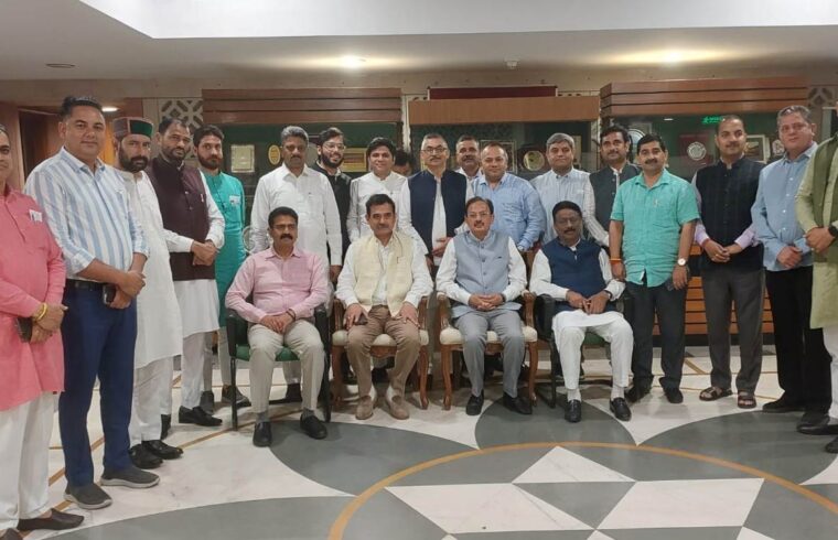 उद्योग मंत्री हर्षवर्धन चौहान ने आज नई दिल्ली मंे लोकसभा सचिवालय में प्रदेश के नवनिर्वाचित विधायकों के लिए आयोजित अनुकूलन कार्यक्रम को संबोधित किया और अपने अनुभव एवं संसदीय कार्यप्रणाली से उन्हें अवगत करवाया।