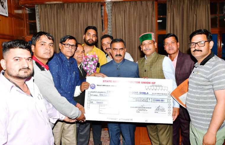 हिमाचल पथ परिवहन निगम कंडक्टर यूनियन की ओर से मुख्यमंत्री राहत कोष में अंशदान