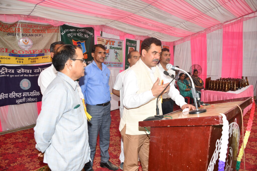 राजकीय वरिष्ठ माध्यमिक पाठशाला भूमति के प्रधानाचार्य हेम राज गौड़ ने मुख्यातिथि का स्वागत किया और विद्यालय का वार्षिक प्रतिवेदन प्रस्तुत किया।