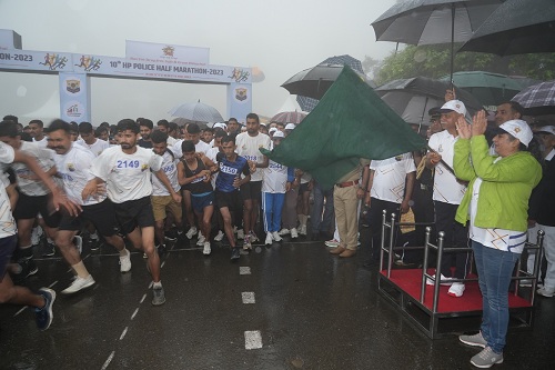 राज्यपाल शिव प्रताप शुक्ल ने आज शिमला के ऐतिहासिक रिज मैदान में नशीली दवाओं के दुरुपयोग और अवैध तस्करी के विरूद्ध अंतरराष्ट्रीय दिवस के उपलक्ष्य पर हिमाचल प्रदेश पुलिस विभाग द्वारा आयोजित 10वीं एचपी पुलिस हाफ मैराथन-2023 को हरी झंडी दिखाकर रवाना किया।