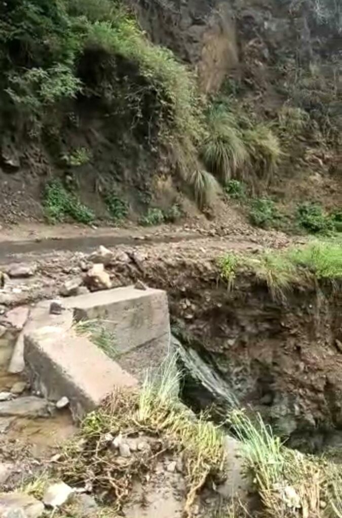 लोगों ने बताया कि सोलन जिले के अर्की उपमंडल में पडने वाली चमाकड़ी पुल से दाव गांव की संपर्क सड़क पूरी तरह क्षतिग्रस्त हो चुकी है क्षेत्र का सम्पर्क कट गया है ।