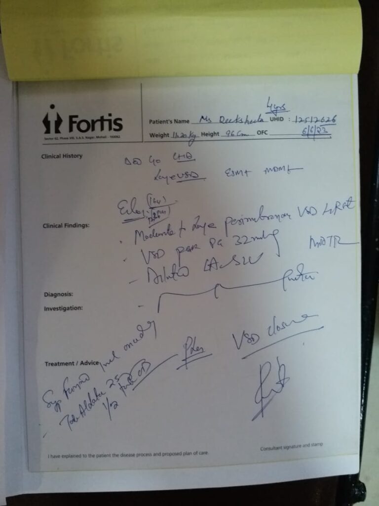 ओच्छघाट की रहने वाली दीक्षिता नाम की लड़की की सर्जरी फोर्टिस हॉस्पिटल मोहाली में हुई।