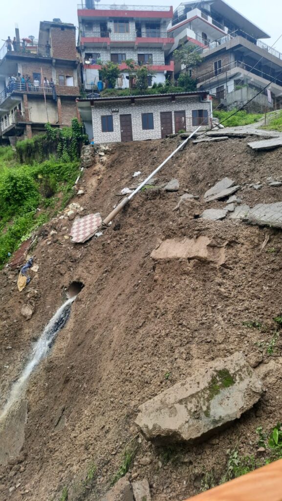सोलन के क्लीन में पहाडी दरकी ,कई मकानों को बना खतरा ।