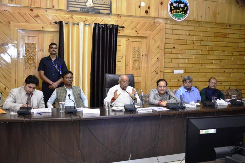 राज्यपाल शिव प्रताप शुक्ल ने आज चम्बा मेें जिला प्रशासन के अधिकारियों के साथ जिले में कार्यान्वित की जा रही विभिन्न केन्द्र प्रायोजित योजनाओं की समीक्षा की। उन्होंने रेडक्रॉस, प्रधानमंत्री टी.बी. मुक्त भारत अभियान की गतिविधियों की समीक्षा करने के साथ-साथ ही जिला में भारी बारिश के कारण हुई क्षति के उपरान्त राहत कार्यों का भी जायजा लिया।