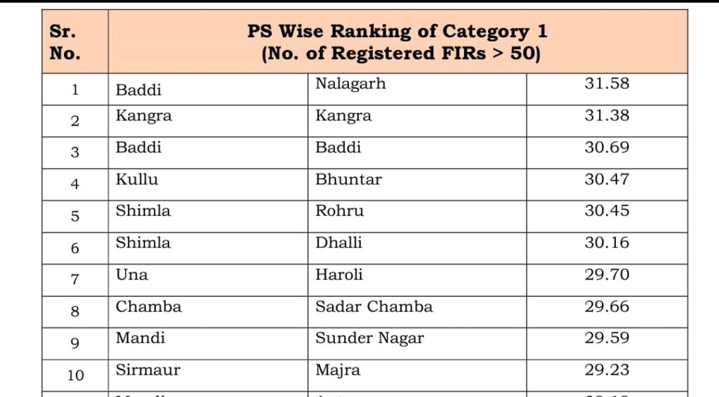 नालागढ़ थाना रैकिंग में आया पहले स्थान पर