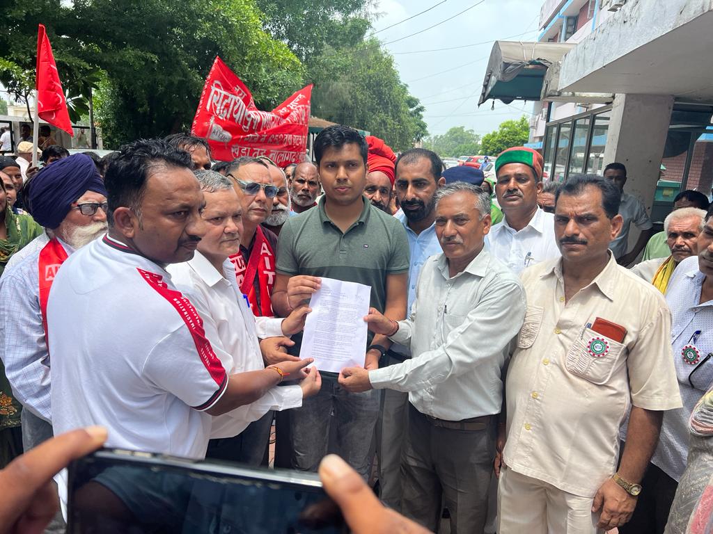 केन्द्र द्वारा बनाए गए कानूनो को वापिस लेने के लिए एसडीएम के माध्यम से भेजा ज्ञापन ।