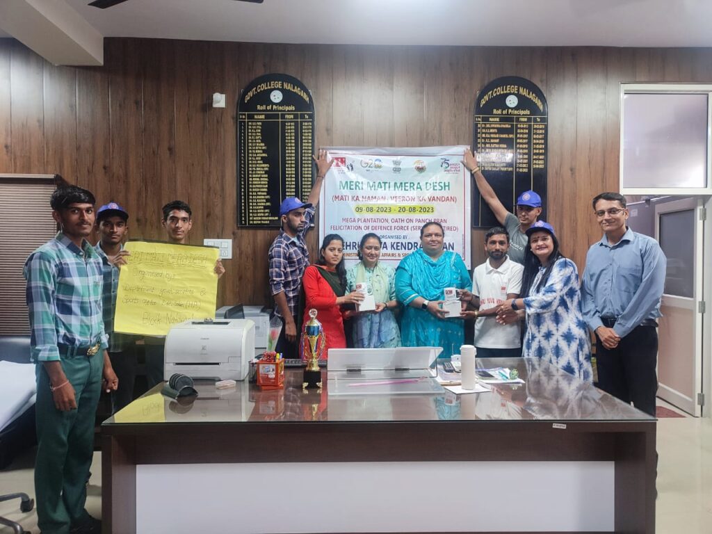” मेरी माटी मेरा देश “ का कार्यक्रम विकास खंड नालागढ़ के गवरमेंट कॉलेज नालागढ़ में नेहरू युवा केंद्र सोलन और जिला युवा सेवा एवं खेल अधिकारी सोलन ने मिलकर मनाया गया।