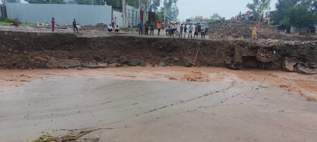 औधोगिक नगरी बीबीएन को हरियाणा से जोडने वाला मढावाला का पुल आज प्रातः चार बजे भारी वर्षा के चलते नदी के बहाव में ढह गया जिस से पिजौंर कालका से आने जाने वालो का यह रास्ता पुरी तरह बन्दहो गया । स्थानीय पुलिस प्रशासन ने यहां आने वाले लोगो को कालका से उपर कालू झण्डा बरोटीवाला रास्ते से आने जाने के निर्देश जारी किए है ।