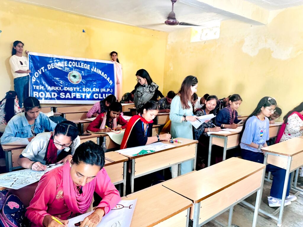 अर्की उपमण्डल के राजकीय महाविद्यालय जयनगर की ओर से आज सड़क सुरक्षा अभियान के तहत पोस्टर मेकिंग की प्रतियोगिता आयोजित की गई । जानकारी के मुताबिक इस प्रतियोगिता में महाविद्यालय के 19 प्रतिभागियों ने हिस्सा लिया इस प्रतियोगिता “अवसर गोल्डन और प्राण रक्षा की दर” तथा “प्रतिकूल मौसम में सड़क सुरक्षा “इन दो महत्वपूर्ण विषयों पर पोस्टर मेकिंग करवाया गया । इस दौरान प्रतियोगिता में दीक्षा बीए प्रथम की छात्रा में पहला स्थान हासिल किया जबकि बीए द्वितीय की भारती में दूसरे स्थान परबीए तृतीया की रीना ने तीसरा स्थान हासिल किया ।