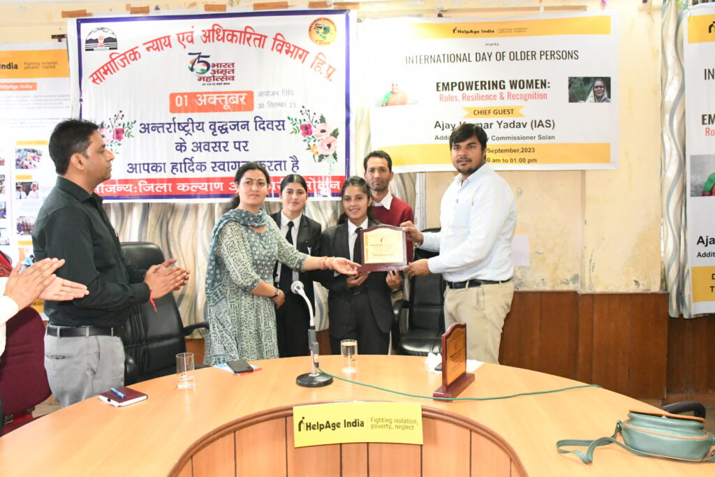 सामाजिक न्याय एवं अधिकारिता विभाग के सौजन्य से आज ज़िला सोलन के कल्याण भवन में अंतरराष्ट्रीय वृद्धजन दिवस मनाया गया। कार्यक्रम की अध्यक्षता अतिरिक्त उपायुक्त सोलन अजय कुमार यादव ने की।