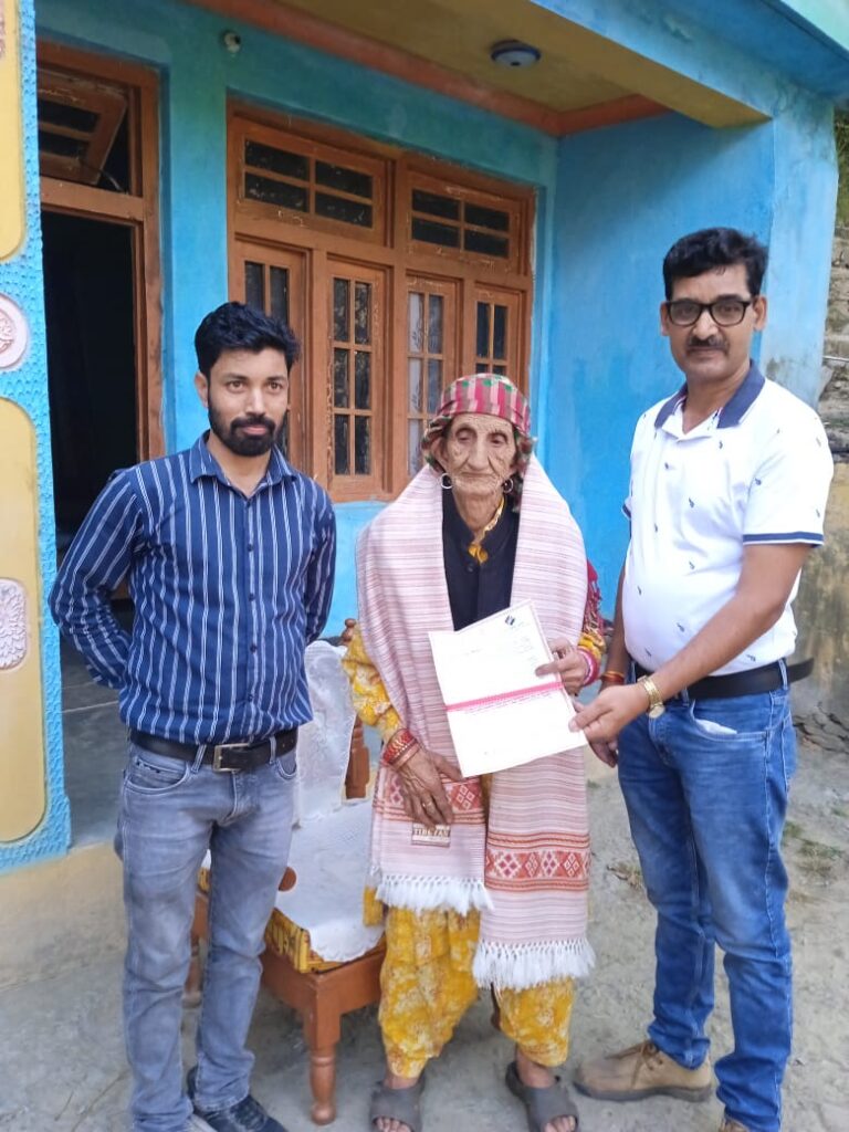 तहसीलदार निर्वाचन प्रताप सिंह ने इस दौरान मतदान केंद्र- 43 जन्नी में 102 वर्षीय शतायु मतदाता सिल्लो देवी को सम्मानित किया ।