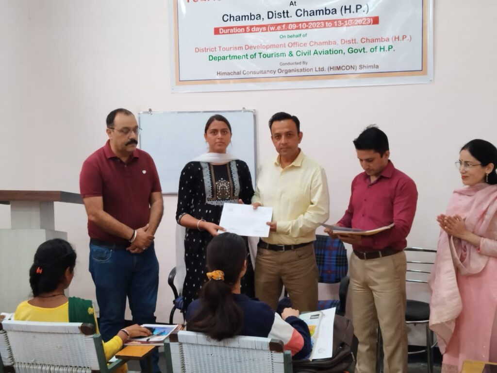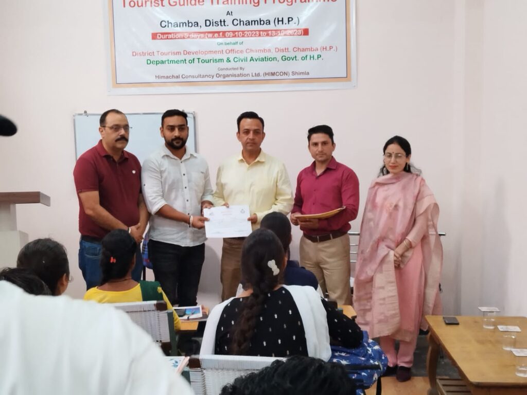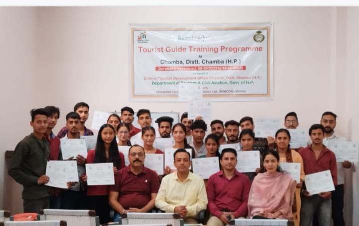पर्यटन विभाग द्वारा हिमकॉन शिमला के माध्यम से नेक्स्ट जेनरेशंस संस्थान चम्बा के प्रशिक्षण हॉल में 9 से 13 अक्टूबर तक 5 दिवसीय टूरिस्ट गाइड के प्रशिक्षण कार्यक्रम काआयोजन किया गया।
