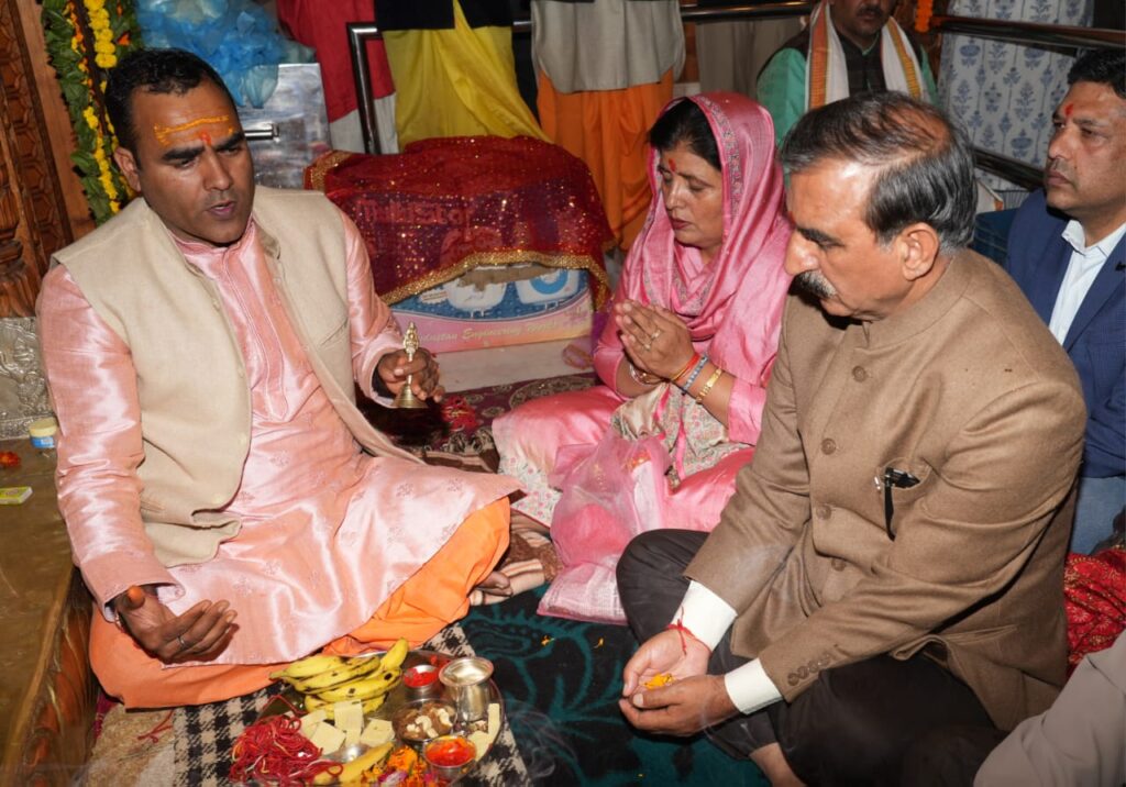 मुख्यमंत्री ठाकुर सुखविंदर सिंह सुक्खू ने अपनी धर्मपत्नी कमलेश ठाकुर के साथ शारदीय नवरात्रि के अवसर पर आज शिमला के तारा देवी मन्दिर में पूजा-अर्चना की। इस अवसर पर उन्होंने प्रदेश की खुशहाली और प्रदेशवासियों की सुख-समृद्धि की कामना की। मुख्यमंत्री ने मन्दिर परिसर का अवलोकन भी किया और श्रद्धालुओं की सुविधा के लिए इसमें और सुधार करने के निर्देश दिए।