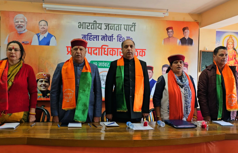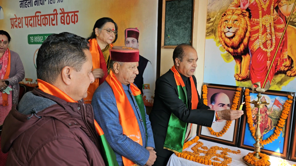 बैठक में पूर्व मुख्यमंत्री एवं नेता प्रतिपक्ष जयराम ठाकुर, भाजपा प्रदेश अध्यक्ष डाॅ0 राजीव बिन्दल, भाजपा प्रदेश उपाध्यक्षा रश्मिधर सूद एवं भाजपा प्रदेश महामंत्री बिहारी लाल शर्मा विशेषरूप से उपस्थित रहे।