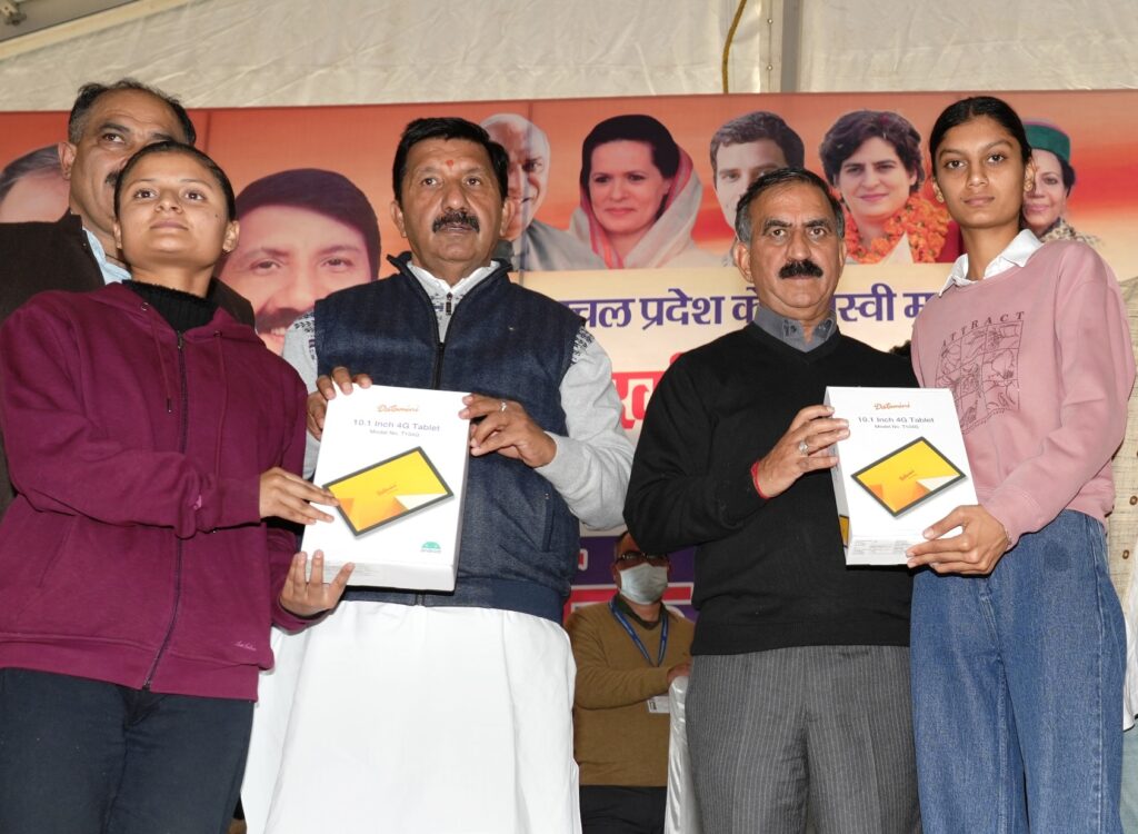 ठाकुर सुखविंदर सिंह सुक्खू ने श्रीनिवास रामानुजन स्टूडेंट डिजिटल योजना के अंतर्गत वित्त वर्ष 2021-22 के लिए हिमाचल प्रदेश में 10वीं व 12वीं तथा कॉलेज स्तर के 25 मेधावी विद्यार्थियों को टैबलेट वितरित किए। जिला में कुल 10552 मेधावी विद्यार्थियों को इस वर्ष टैबलेट वितरित किये जा रहे हैं। इसके अलावा उन्होंने मुख्यमंत्री सुखाश्रय योजना के अंतर्गत 10 अनाथ बच्चों को प्रमाण पत्र भी वितरित किए।