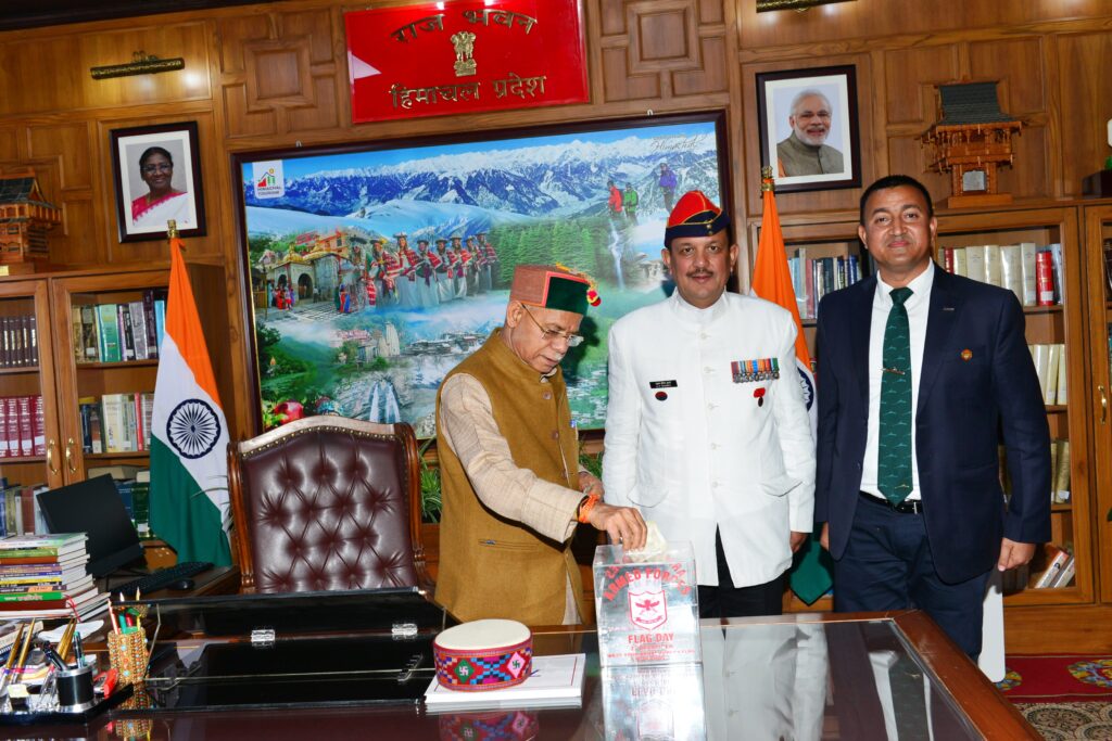 इस अवसर पर सैनिक कल्याण विभाग के निदेशक ब्रिगेडियर मदन शील शर्मा (सेवानिवृत्त) ने राज्यपाल के कोट पर सशस्त्र सेना ध्वज लगाया।