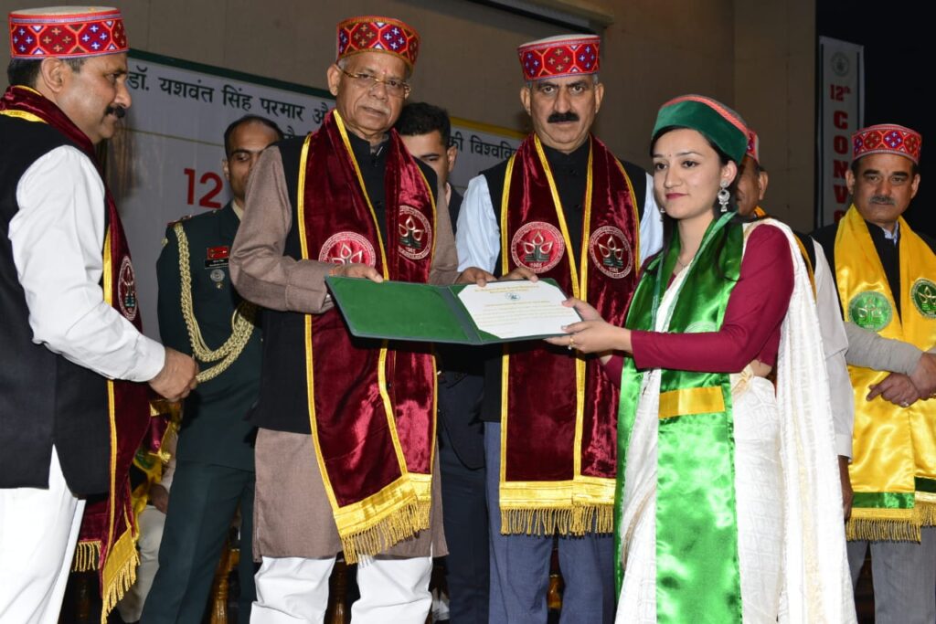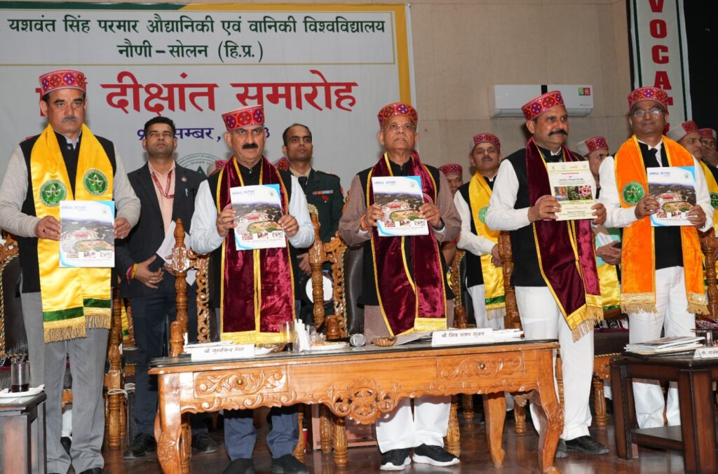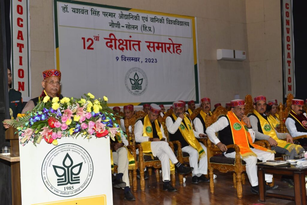 राज्यपाल शिव प्रताप शुक्ल ने आज सोलन जिले के नौणी स्थित डॉ. यशवंत सिंह परमार औद्यानिकी एवं वानिकी विश्वविद्यालय के 12वें दीक्षांत समारोह की अध्यक्षता की। इस अवसर पर मुख्यमंत्री ठाकुर सुखविंदर सिंह सुक्खू बतौर मुख्यातिथि शामिल हुए।