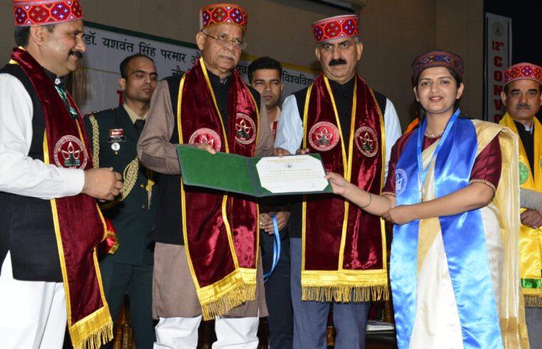 राज्यपाल शिव प्रताप शुक्ल ने आज सोलन जिले के नौणी स्थित डॉ. यशवंत सिंह परमार औद्यानिकी एवं वानिकी विश्वविद्यालय के 12वें दीक्षांत समारोह की अध्यक्षता की। इस अवसर पर मुख्यमंत्री ठाकुर सुखविंदर सिंह सुक्खू बतौर मुख्यातिथि शामिल हुए।