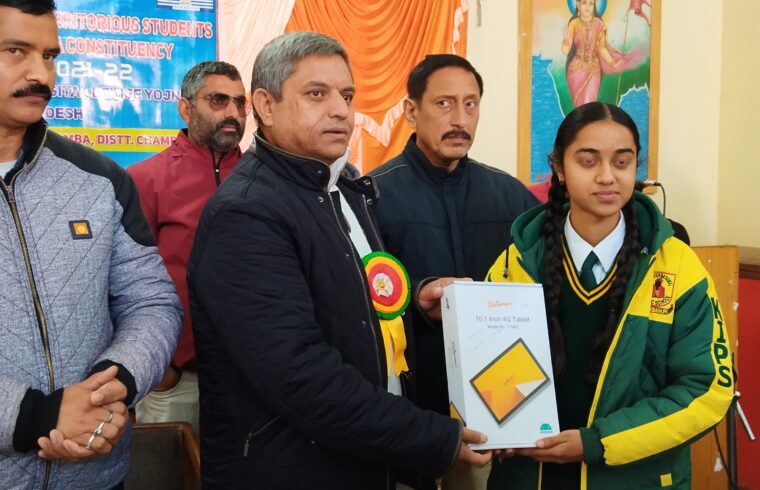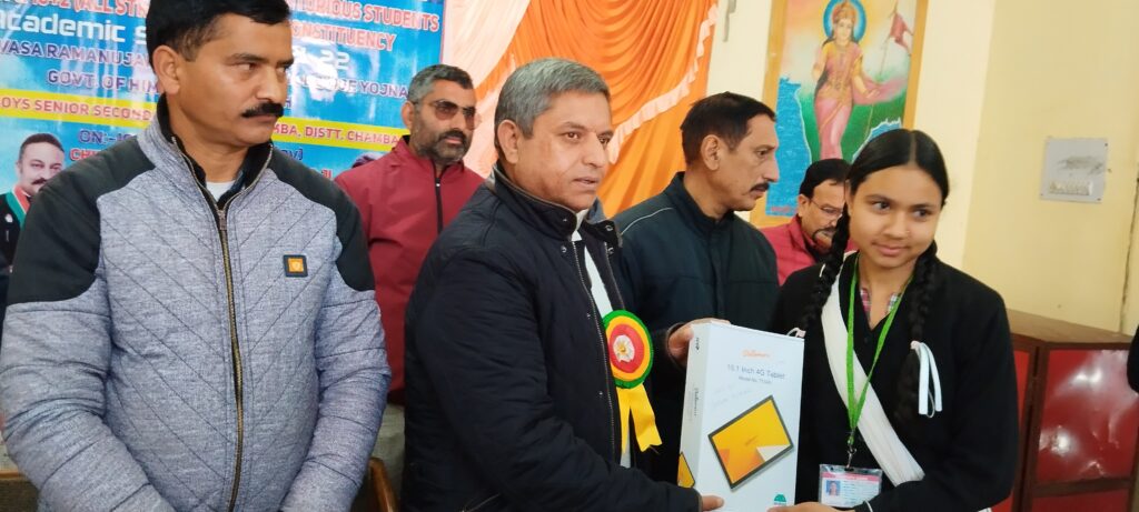 इस से पूर्व विद्यायक नीरज नैय्यर ने राजकीय बाल वरिष्ठ माध्यमिक पाठशाला चंबा में वर्ष 2021-22 के मेधावी विद्यार्थियों को प्रदेश सरकार की श्रीनिवास रामानुजन डिजिटल डिवाइस योजना के तहत 136 मेधावी विद्यार्थियों को टैबलेट प्रदान कर सम्मानित किया जिसमें 88 बाहरवीं और 48 दसवीं के मेधावी छात्र- छात्राऐं शामिल है।
