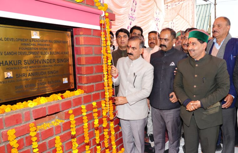मुख्यमंत्री ठाकुर सुखविंदर सिंह सुक्खू ने आज कांगड़ा जिला के शाहपुर विधानसभा क्षेत्र के अंतर्गत रैत में 5.36 करोड़ रुपए की लागत से निर्मित होने वाले खंड विकास अधिकारी के कार्यालय भवन का शिलान्यास किया।