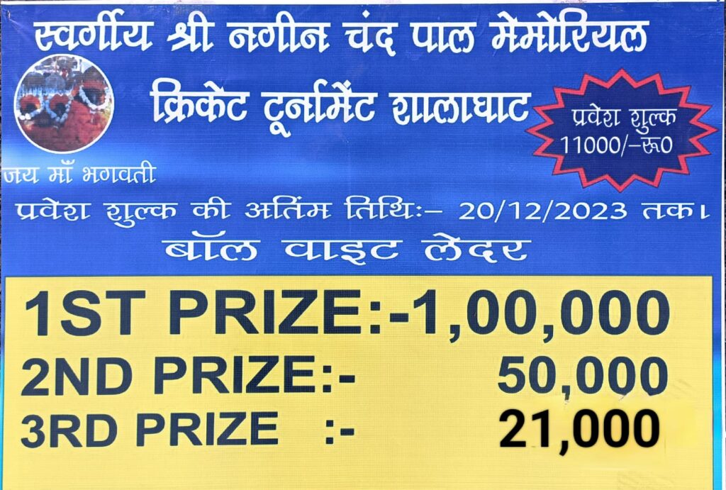 उन्होने इस मौके पर यहां आई खिलाडी टीमो का आभार व्यक्त करते हुए आशीर्वाद भी दिया उन्होने कहा कि इस क्रिकेट प्रतियोगिता में प्रथम आने वाली टीम को एक लाख रूपए इनाम दिया जाएगा जबकि द्वितीय स्थान पर रहने वाली टीम को 50 हजार रूपए नकद दिए जाएगें ।