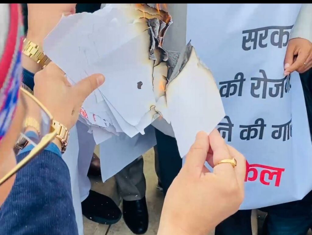 इस अवसर पर प्रतीकात्मक रूप से विधान सभा परिसर के अंदर बीजेपी विधायक मण्डल ने अपनी डिग्री फाड़ी और जलाई। नेता प्रतिपक्ष ने कहा कि आज प्रदेश के युवाओं का यही हाल है। युवाओं को सरकार नौकरी नहीं दे रही है।