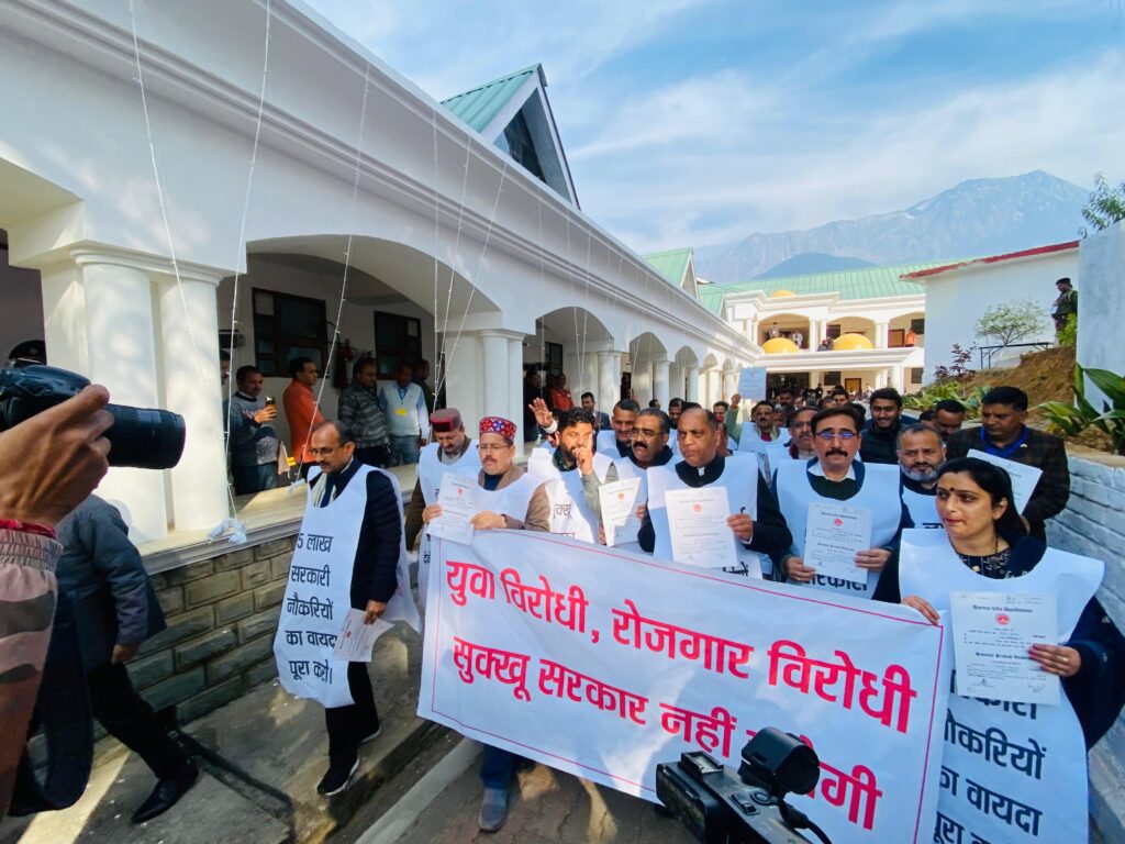 मिली जानकारी के मुताबिक इस प्रदर्शन के दौरान भारतीय जनता पार्टी के विधायको ने शिक्षा की डिग्रीयो को हाथो में ले कर नारेबाजी की और कांग्रेस द्वारा चुनावी वायदो को पूरा न किए जाने का विरोघ किया । यह प्रदर्शन भाजपा विधायक नेता प्रतिपक्ष जय दाम ठाकुर के नेतृत्व में किया ।