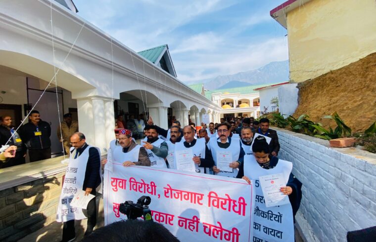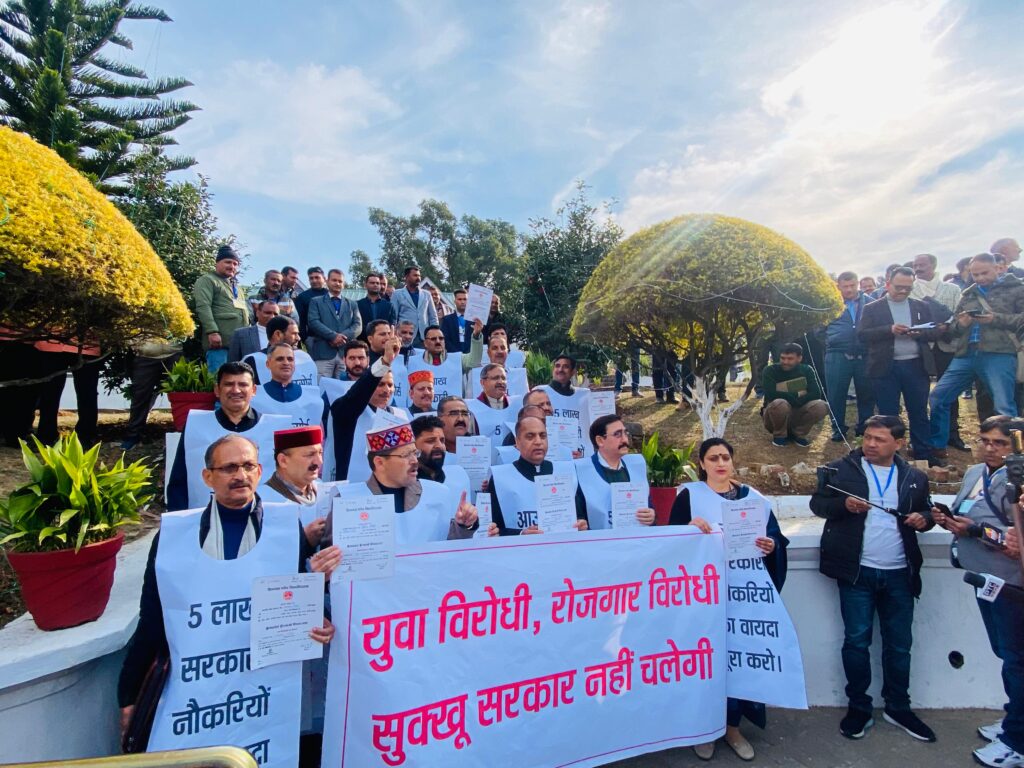 हिमाचल में कांग्रेस सरकार द्वारा चुनावो में किए गए वायदो को पूरा न करने पर भारतीय जनता पार्टी के धरने पर्दशन जारी है । हिमाचल विधान सभा के शीतकालीन सत्र के दौरान भारतीय जनता पार्टी ने युवाओ को रोजगार न देने के मामले में विधान सभा के अन्दर विरोघ प्रर्दशन किया ।