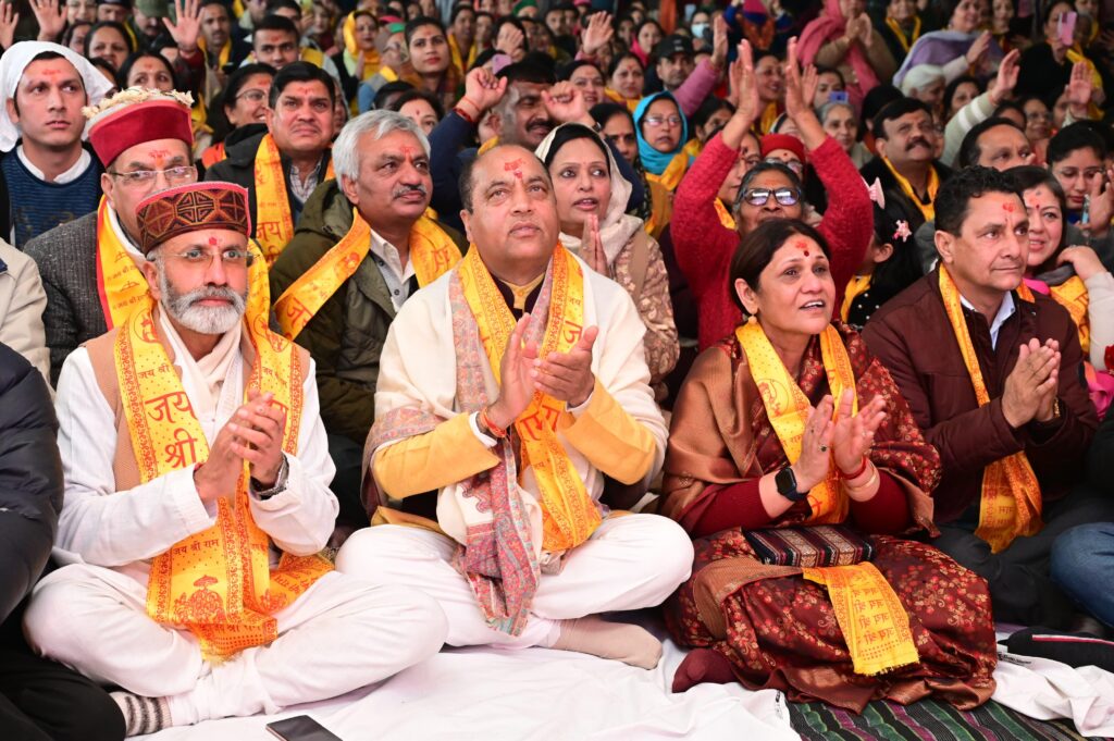 नेता प्रतिपक्ष जय राम ठाकुर ने कहा कि भगवान राम का अपनी जन्मस्थली अयोध्या में बाल रूप में विराजमान होते ही भारत के सैकड़ों करोड़ लोगों के सदियों की प्रतीक्षा पूर्ण हुई। भगवान राम के मंदिर के लिए सैकड़ों साल का संघर्ष चला। जिसमें अनगिनत लोगों ने अपने प्राणों की आहुति दी। तब जाकर यह शुभ अवसर आया है। उन्होंने इस महायज्ञ में योगदान देने वाले सभी बलिदानियों को नमन करते हुए कहा कि उनके इस योगदान के कारण ही हम यह दिन देख पाए हैं कि भगवान राघव की मोहक मूर्ति उनके जन्मस्थान पर प्राण प्रतिष्ठित हो पाई है।