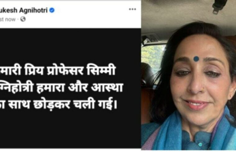 उन्होंने लिखा कि हमारी प्रिय सिम्मी अग्निहोत्री हमारा और आस्था का साथ छोड़ कर चली गईं। उन्होंने चंडीगढ़ ले जाते समय अंतिम सांस ली।