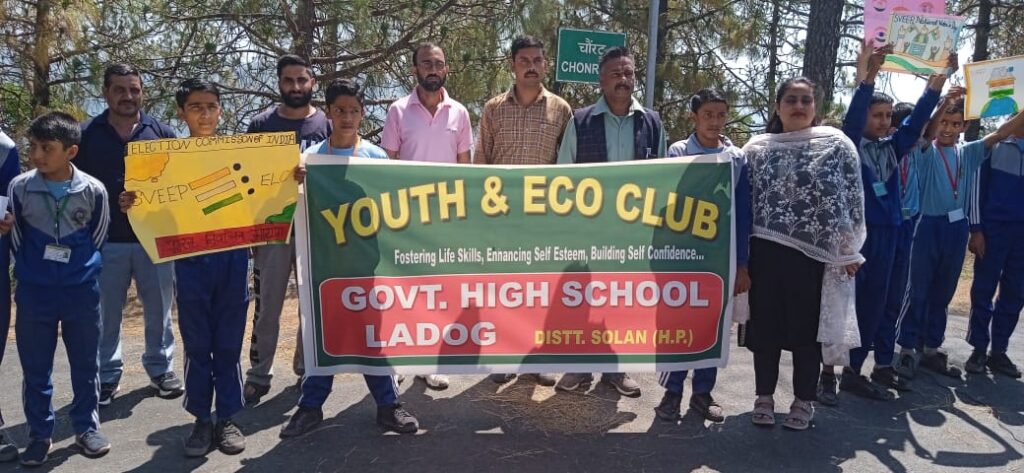 स्वीप कार्यक्रम के अंतर्गत राजकीय उच्च विद्यालय लड़ोग में मुख्याध्यापिका मनोरमा चड्ढा की अध्यक्षता में रैली का आयोजन किया गया।