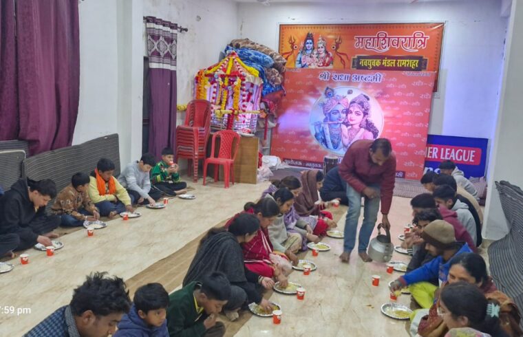 महाशिवरात्रि केपर्व पर रामशहर बाजार के प्राची शिव मन्दि में विशाल भण्डारे का आयोजन ।
