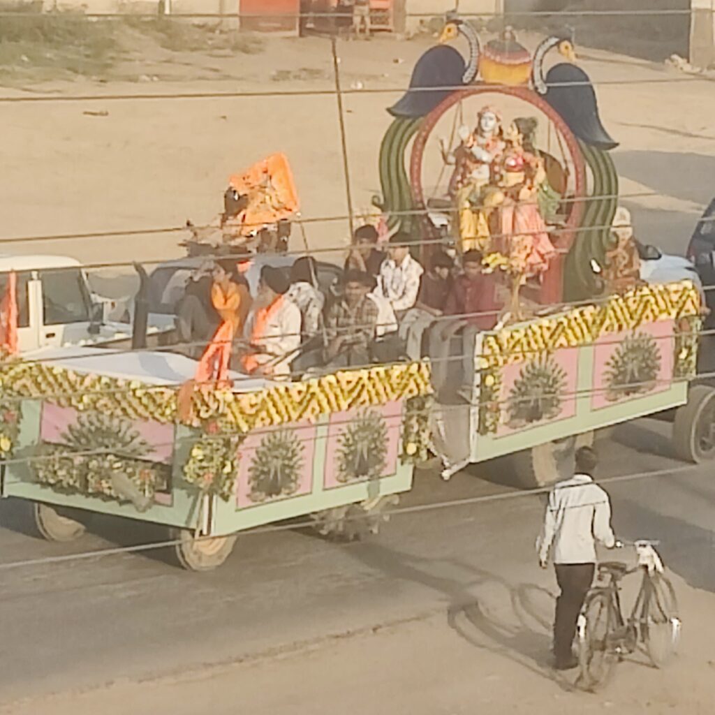 मिली जानकारी के मुताबिक औधोगिक नगरी में हजारो लोगो ने इस झांकी में शिरकत की और सनातन को मानने वालो ने जय श्री राम के नारे लगाते हुए अपने अपने वाहनो के अलावा टैक्टरो पर भी श्री राम ध्वज लगा कर झांकी में शामिल हुए ।