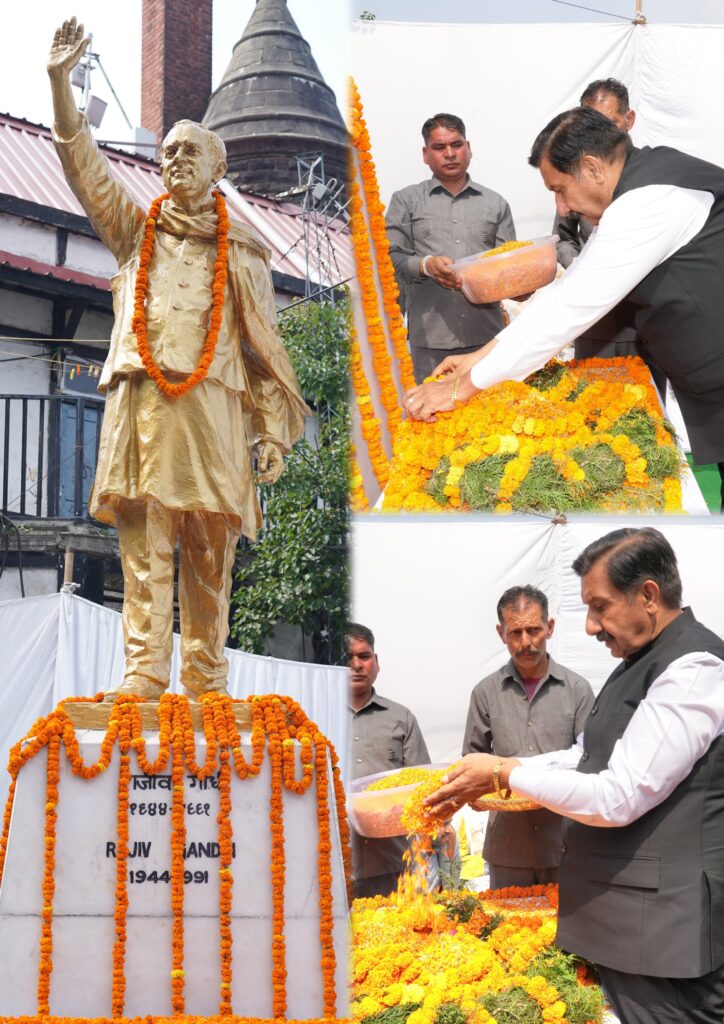 पूर्व प्रधानमंत्री भारत रत्न राजीव गांधी की पुण्यतिथि के अवसर पर उप-मुख्यमंत्री मुकेश अग्निहोत्री ने आज छोटा शिमला स्थित उनकी प्रतिमा पर पुष्प अर्पित कर श्रद्धांजलि दी।