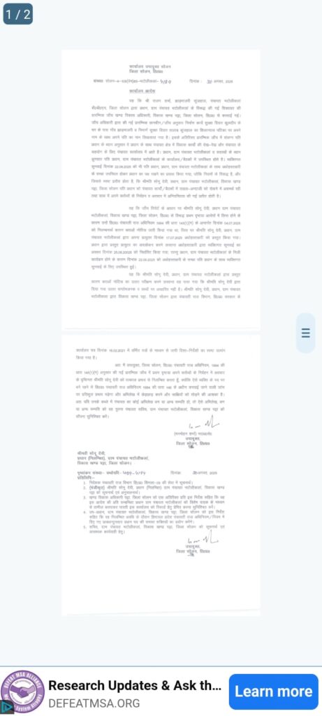 जांच रिपोर्ट के आधार पर भटोली कलां की प्रधान सोनू देवी के विरुद्ध प्रथम दृष्टया आरोप के अनुरूप लिप्त होने के कारण पंचायती राज अधिनियम 1994 की धारा 145 (1) (ग) के अन्तर्गत 4 जुलाई को कारण बताओ नोटिस जारी किया गया था, जिस पर प्रधान की ओर से प्रस्तुत कारण बताओ नोटिस के उत्तर का परीक्षण करने के बाद पाया गया कि उनका जवाब तथ्यों पर आधारित नहीं था। प्रधान ने पंचायती राज की ओर से जारी दिशा निर्देशों का उल्लंघन किया है।