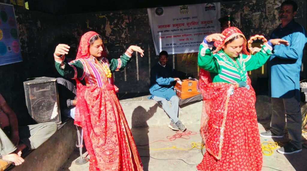 इस दौरान कलाकारों ने जागरूक समुदाय, सुरक्षित समुदाय के विषय पर लोगों को भूकंप के दौरान जान-माल की क्षति से होने वाले नुकसान को कम के लिए भूकंपरोधी मकान बनाने की विभिन्न तकनीकों बारे में अवगत करवाया।