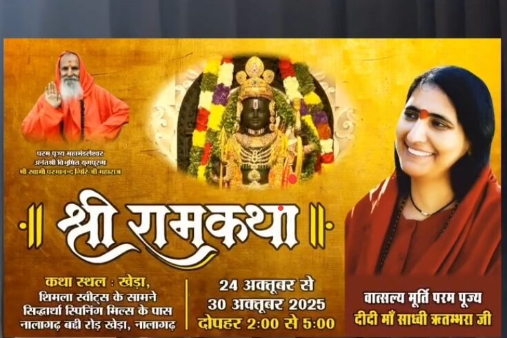 औद्योगिक नगरी बीबीएन के नालागढ़ के खेड़ा में चल रही श्रीराम कथा के तीसरे दिन दीदी मां साध्वी ऋतम्भरा जी के प्रेरणादायक प्रवचनों ने वातावरण को भक्तिरस से सराबोर कर दिया।