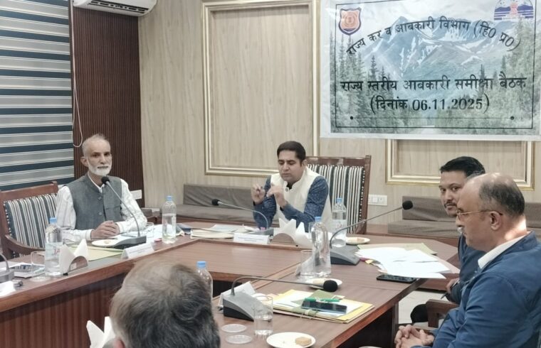 राज्य कर एवं आबकारी विभाग की विभागीय समीक्षा बैठक आज BBNDA कॉन्फ्रेंस हॉल, झरमाजरी (जिला सोलन) में आज सम्पन्न हुई। बैठक की अध्यक्षता राज्य कर एवं आबकारी आयुक्त डॉ. यूनुस द्वारा की गई।